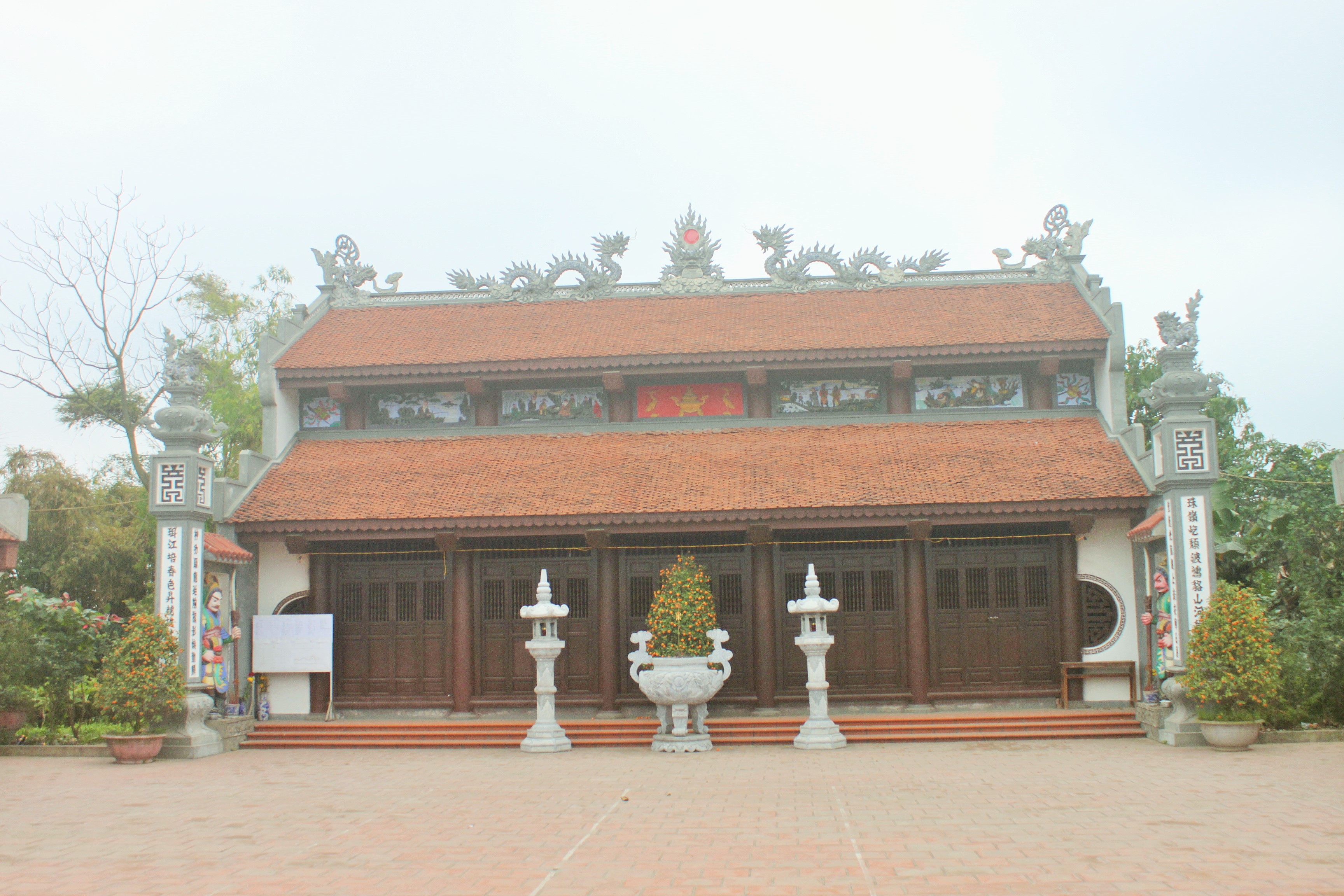 Cột nghi môn điện Long Hưng ở Xuân Quan, Văn Giang, Hưng Yên.