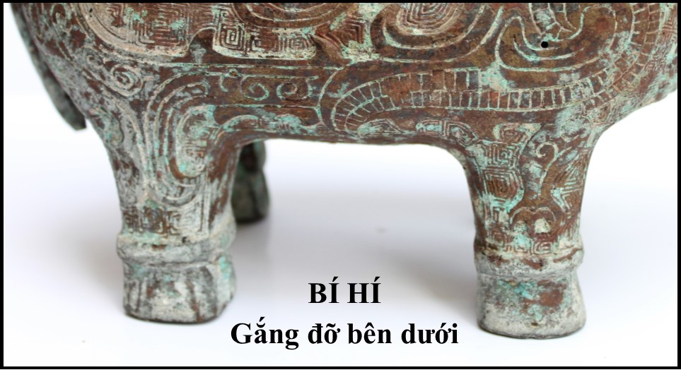 Trên đồ đồng Thương Chu nét biểu tượng của Rùa – Bí hí nằm ở những cái chân của các đồ vật. Chân đỉnh, chân vạc, chân ấm… của các đồ đồng thời kỳ này đều làm to, ngắn, trông giống như chân voi. Bí hí còn có tên là Bá hạ, có thể cùng nghĩa là chống đỡ từ phía dưới. Vậy là có thể thấy chân Rùa hay yếu tố Bí hí trong các đồ đồng cổ bởi người Việt đã theo hình con rùa mà làm nhà, làm chân cột chống đỡ các đồ vật.