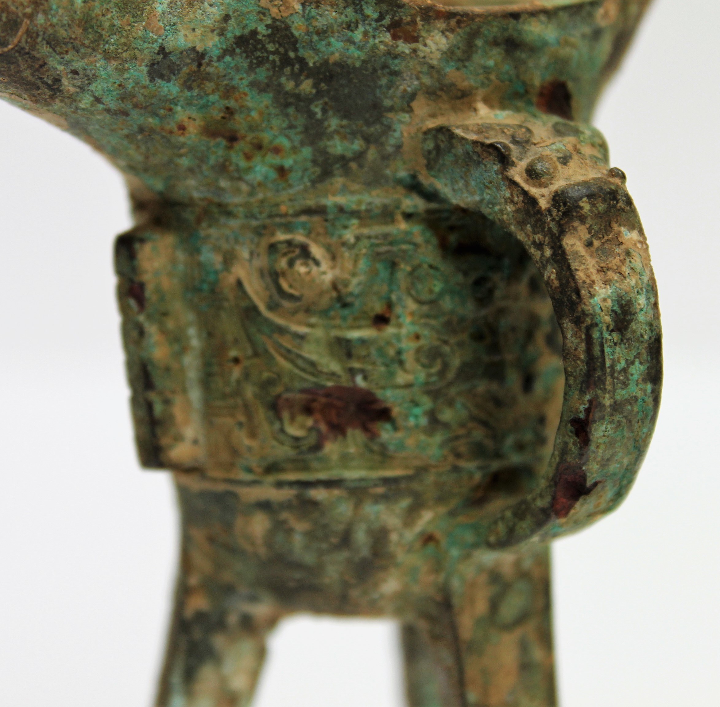 Tay cầm chiếc tước thời Thương có hình đầu thú.
