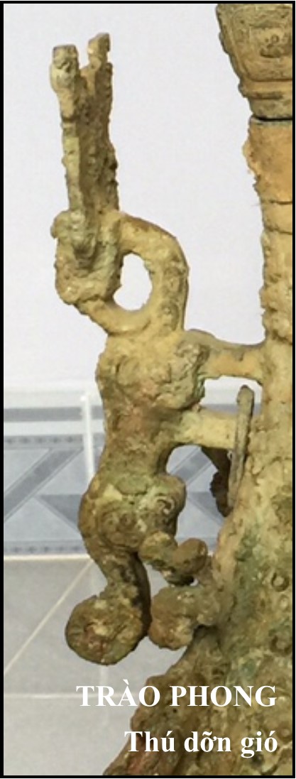 Ví dụ trên chiếc bình thời Xuân Thu, một dạng bình tiêu biểu của thời kỳ này có 2 con vật nửa hổ nửa rồng đang ngoảnh đầu ra ngoài. So sánh thì thấy vị trí và hình tượng của nó rất giống với Trào phong trên đền đài. Hoặc trên chiếc bình thời Chiến Quốc có 4 con rồng được tạo bám 4 góc bình. Nhưng hình rồng hổ ở thành bình đồng Thương Chu chính là tiền thân của con Trào phong sau này trên đền đài.