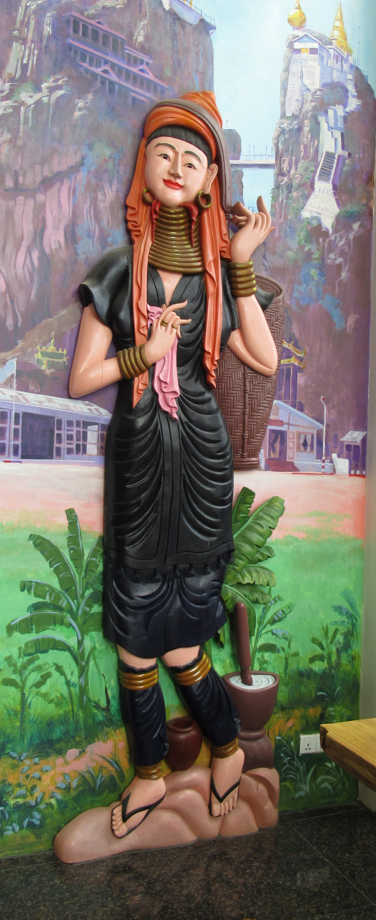 Phù điêu phụ nữ người Kayan với những chiếc vòng đồng trên cổ, cổ tay và cổ chân.
