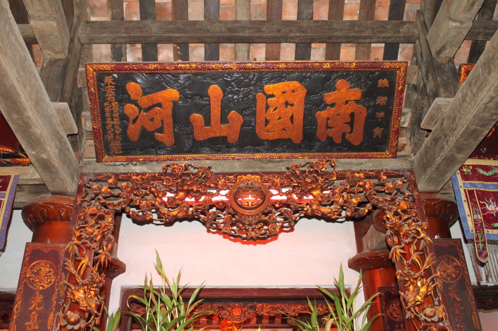 Câu đối ở đình Thổ Hà: Đông Chu phong vũ thị hà thì, biệt bả thanh hư khai Đạo Giáo Nam Việt sơn hà duy thử địa, độc truyền ảo hóa tác thần tiên.