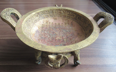 Một chiếc mâm đồng 4 chân thời Tây Chu (quãng thế kỷ 10 – 9 TCN) được thấy ở miền Bắc Việt. Dạng mâm này là đồ tế tự, dùng để đựng các vật phẩm hiến tế trong các dịp lễ quan trọng của triều đình. Trong lòng chiếc mâm có đúc chìm một bài minh bằng chữ Kim văn. Nội dung bài minh này có thể được đọc như sau: