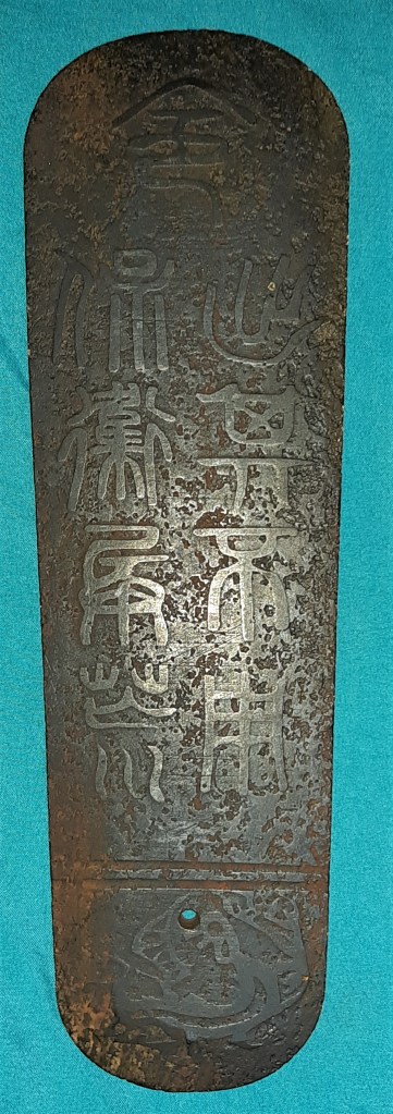 Tấm thẻ lệnh mang dòng chữ Đồ báo nhi thuyết, nhắc tới chuyện đời Tần Mục Công được các binh sĩ dốc lòng ra sức chiến đấu bảo vệ Mục Công để đền ơn ban rượu và thịt ngựa. Tần Mục Công là vị thủ lĩnh nước Tần nổi lên trong số Xuân Thu Ngũ bá với sự phò trợ của tướng quốc Bách Lý Hề. Đồ báo nhi thuyết trên lênh bài có thể hiểu là khẩu hiện cho các chiến sĩ nước Tần chiến đấu để đền báo ơn vua.