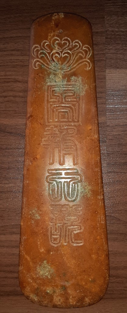 Cụ thể hơn nữa, có thanh ngọc giản màu đen (chất liệu bằng đá thạch anh) chạm nổi chữ Lệnh 令 và 2 dòng chữ tiểu triện là: