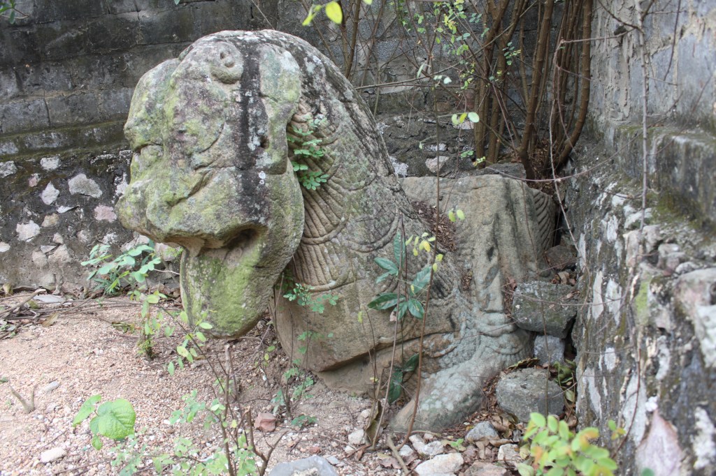 Cũng Truyện Giếng Việt kể, Thôi Vĩ sau khi gặp Ân Hậu và Ma Cô Tiên đã được một người là Dương quan dẫn đường trở về. “Dương quan nhân biến thành một con dê đá đứng ở trong núi, nay con dê ấy còn ở sau chùa Việt Vương trên núi Trâu.” Con “dê đá” này ngày nay vẫn còn, là một bức tượng bằng đá cổ hình nửa thân một con thần thú trông có dáng dấp của con Dê do có cặp sừng cong.