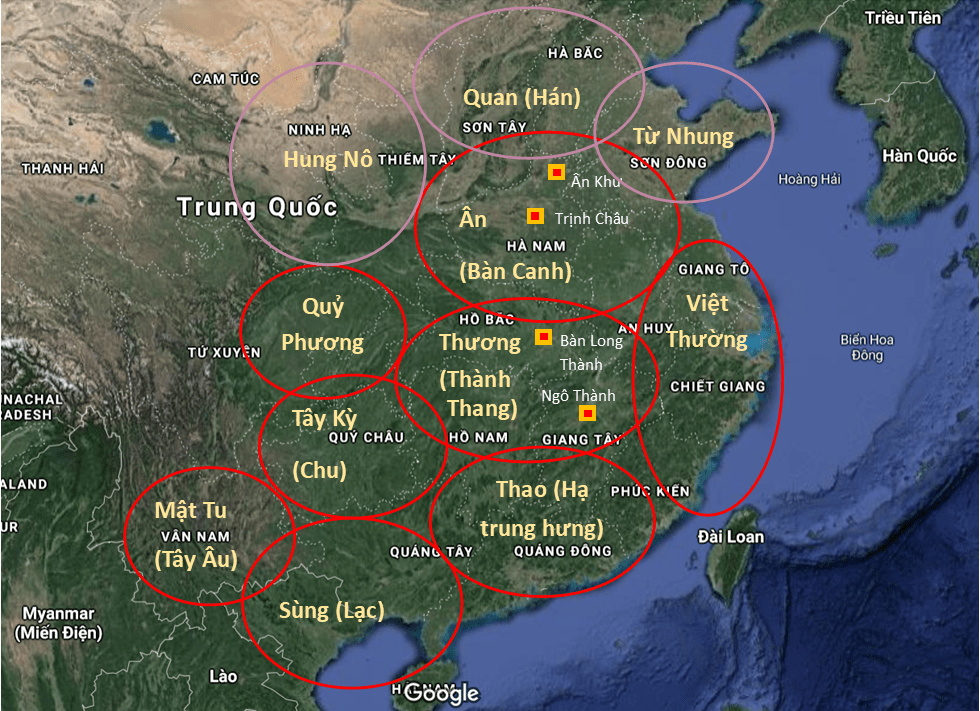 Điểm so lịch phả Tam đại Trung Hoa và Hùng Vương Thánh Tổ ngọc phả về thời kỳ này để thấy lịch sử thời Hùng Vương của người Việt đã theo chân những người con của cha Lạc Long tiến về miền Đông Bắc, làm chủ cả vùng đất Nam Dương Tử cũng như từ Dương Tử tới Hoàng Hà. Những bằng chứng vật chất rõ ràng về những thời đại lập quốc trên vùng đất này đã ngày càng lộ rõ.