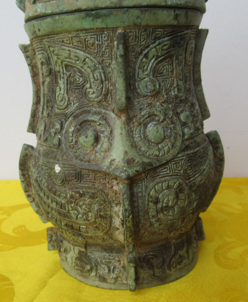 Toàn bộ hình đúc và trang trí trên chiếc đỉnh như vậy gồm 6 con rồng lớn tạo thành 3 cụm Thao thiết và 6 cụm Bồ lao, mỗi cụm 2 con rồng 2 đầu. Chiếc đỉnh mang đúng hoa văn và phong cách trang trí của thời Ân Thương với biểu tượng chính là Rồng, nhấn mạnh tới vương quyền theo dòng dõi của Quốc phụ Lạc Long Quân.