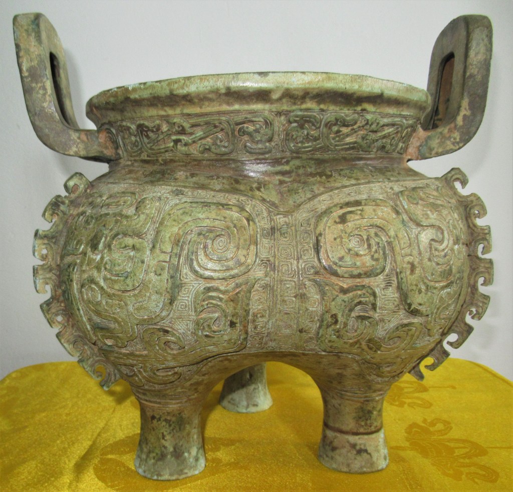 Một chiếc đỉnh cổ thời Thương thực sự như vậy được thấy ở Việt Nam. Đỉnh có đường kính 28 cm, cao 26 cm, kích thước tương đương với chiếc đỉnh Phỏng Thương của vua Minh Mạng ở trên. Đỉnh có hình tròn, chia làm phần, có 3 chân tròn. Đồ vật có chân như vậy là đặc trưng của dòng văn hóa đồ đồng đỉnh vạc Thương Chu. Những chiếc chân lớn như chân rùa đó được gọi là Bá hạ hay Bí hí, một trong những đứa con của rồng.