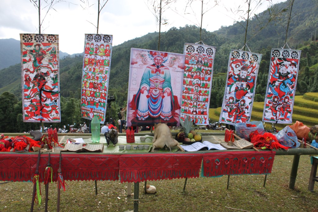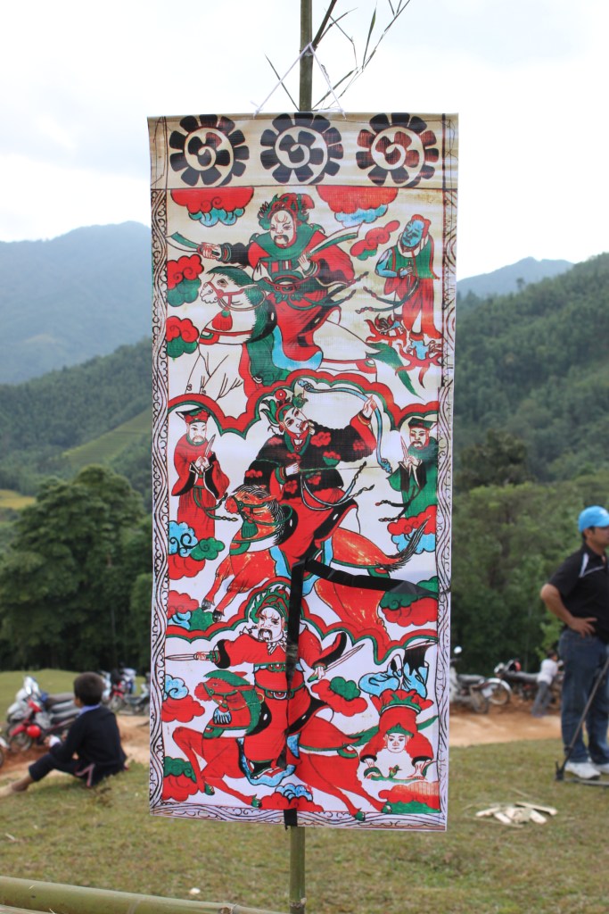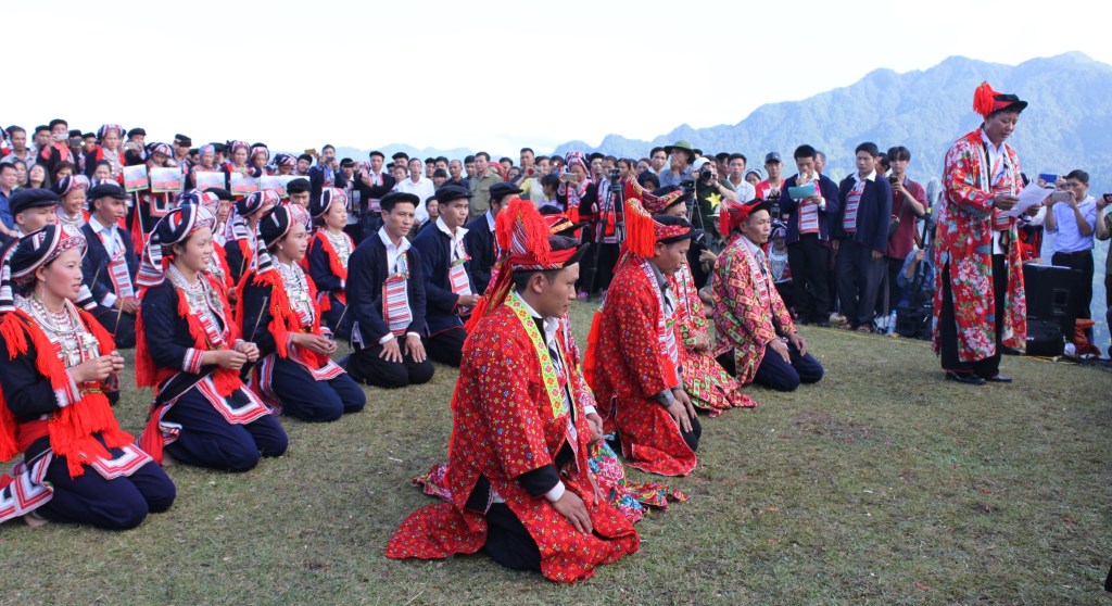 Chúc xong, Thục Vương quay về đô thành, ban chiếu cho thôn Cổ Tích, xã Nghĩa Lĩnh Nghĩa Cương làm thôn dân trưởng tạo lệ, bốn mùa tám tiết hương đèn không ngừng để phụng thờ Hùng Vương Sơn thánh (xem theo trong sự tích của Hùng Vương). 22 xóm của huyện Bất Bạt, Thủ Pháp, làm dân thôn trưởng tạo lệ, bốn mùa tám tiết hương đèn không ngừng để phụng thờ Sơn Thánh. Cùng với xã Trung Độ cùng huyện làm dân trưởng thủ lệ. Chính quán động Lăng Sương, ngoại quán, các xã An Lãng, An Đức, Lũng Phong, Lũng Phao, Ly Trúc, Thái Hoà của khuê Mông Hóa, Vật Lại, Vật An, Vật Phú, Tri Lai, Đồng Bảng, Cẩm Đới, Bình Lộng, An Vệ, Bảo Vệ, Cổ Lãm, An Bạch của huyện Minh Nghĩa, cùng với các ruộng thờ ở các phủ huyện xã sách động trang, cộng 2.700 mẫu để phụng thờ hương lửa cho các điện Thượng, Hạ, Trung, mãi trùm vạn thế.