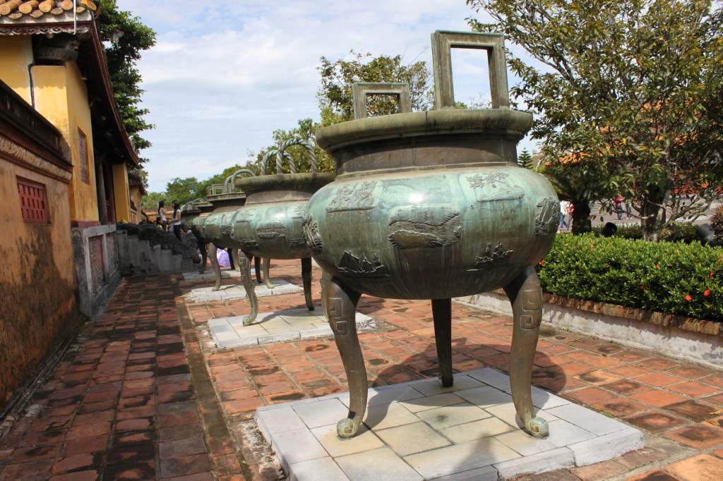 9 chiếc đỉnh to lớn sừng sững nay vẫn còn tại Thế miếu trong kinh thành Huế là một lời minh chứng cho thời kỳ huy hoàng của đế quốc Đại Namvà tư tưởng noi gương các đời Tam Đại của vua Minh Mạng.