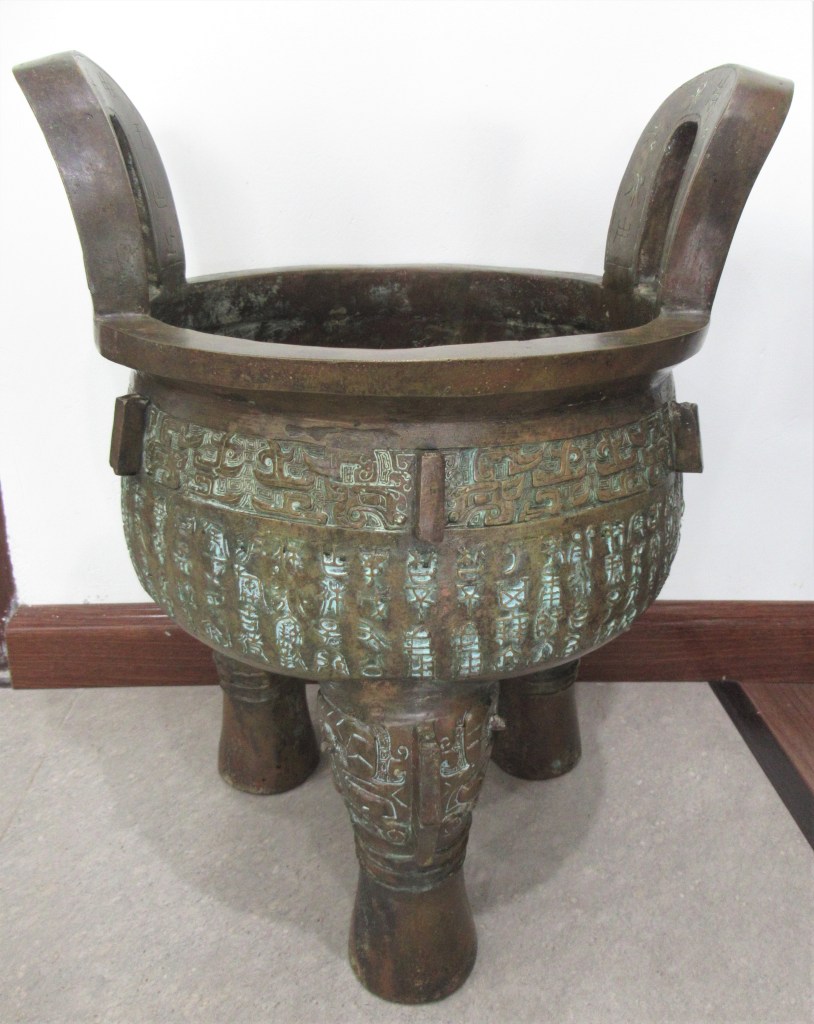 Một chiếc đại đỉnh lớn thật sự của thời Chu đúc bằng đồng, cao tổng cộng 53 cm, rộng tới 43 cm, nặng 12 kg. 2 quai đỉnh hình chữ U lớn, dày. Mặt ngoài mỗi quai có hình hai con rồng chầu mặt trời. Trên từng quai đỉnh có khắc 8 chữ Kim văn lớn: 周王作之子孫永用