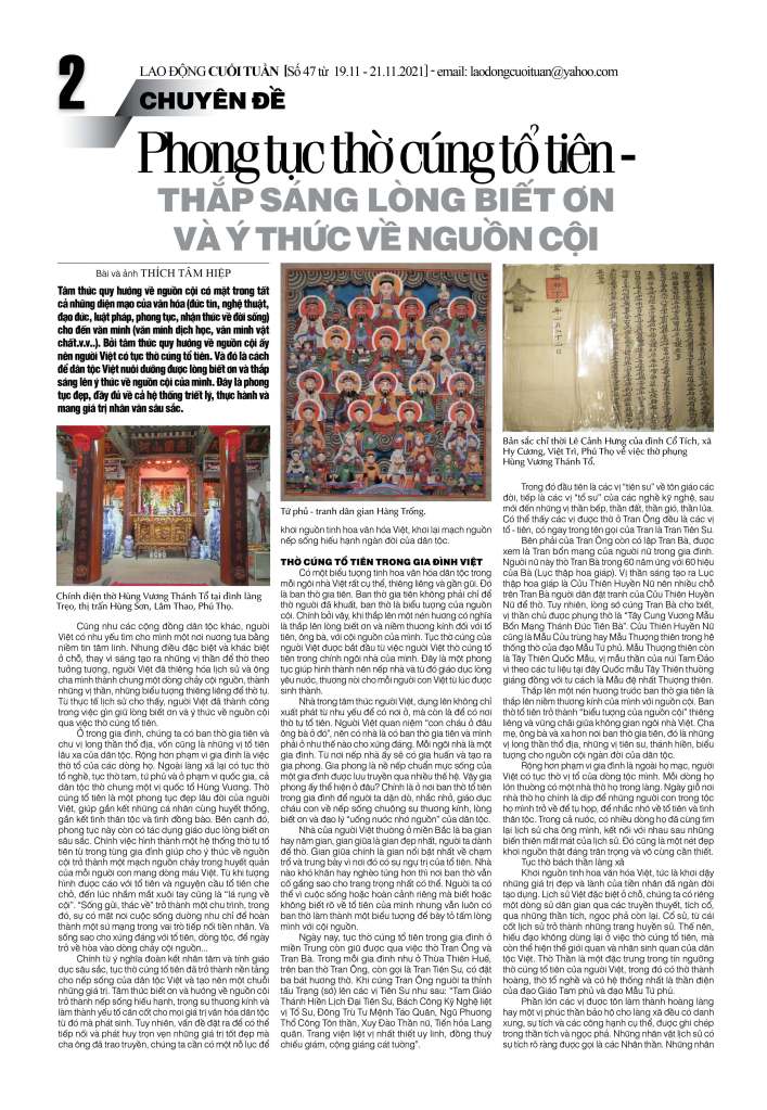 Chính từ ý nghĩa đoàn kết nhân tâm và tính giáo dục sâu sắc, tục thờ cúng tổ tiên đã trở thành nền tảng cho nếp sống của dân tộc Việt và tạo nên một chuỗi những giá trị. Tâm thức biết ơn và hướng về nguồn cội trở thành nếp sống hiếu hạnh, trọng sự thương kính và làm thành yếu tố căn cốt cho mọi giá trị văn hóa dân tộc từ đó mà phát sinh. Tuy nhiên, vấn đề đặt ra để có thể tiếp nối và phát huy trọn vẹn những giá trị tốt đẹp mà cha ông đã trao truyền, chúng ta cần có một nỗ lực để khơi nguồn tinh hoa văn hóa Việt, khơi lại mạch nguồn nếp sống hiếu hạnh ngàn đời của dân tộc.