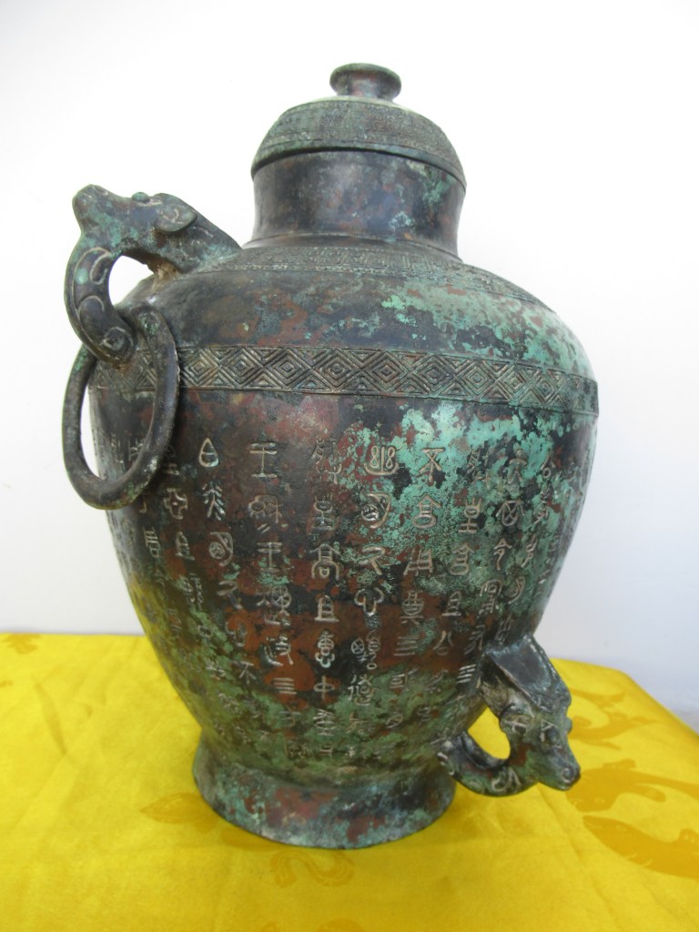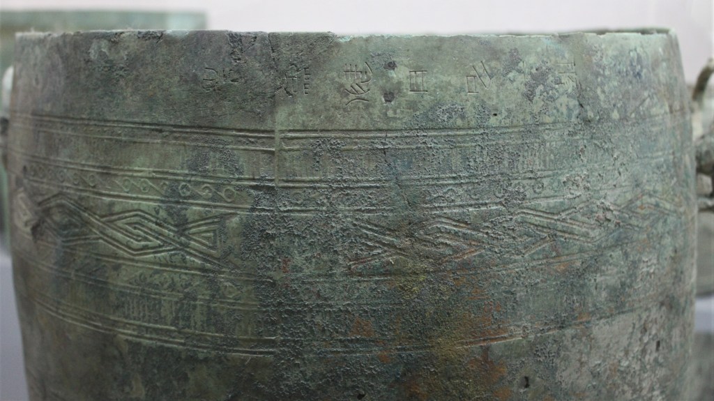 Ở nước ta, sách Đại Nam nhất thống chí chép ở đền Đồng Cổ tại Thanh Hóa “có một cái trống đồng, nặng ước 100 cân, đường kính hơn một thước, năm tấc, cao hơn hai thước, trong rỗng không có đáy, bên tai hơi khuyết, trên mặt có chín vòng khuyên, lưng tắt mà rốn kín, bốn bên có giây khắc chữ Thập ngoặc, có chữ như lối chữ Khoa đẩu, nhưng lâu ngày không thấy rõ.” “Lối chữ Khoa đẩu” ở đây chỉ dạng chữ Đại triện thời Chiến Quốc, là loại chữ trên nền tảng của chữ Kim văn (Khoa đẩu) nhưng có cải tiến hơn về kết cấu và nét chữ.