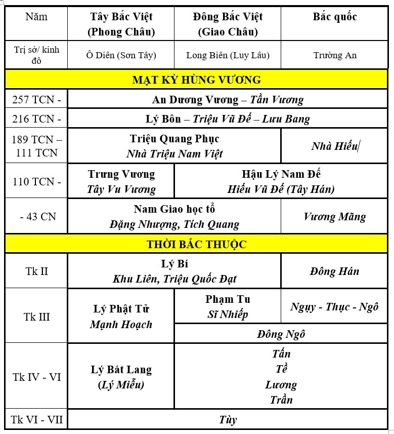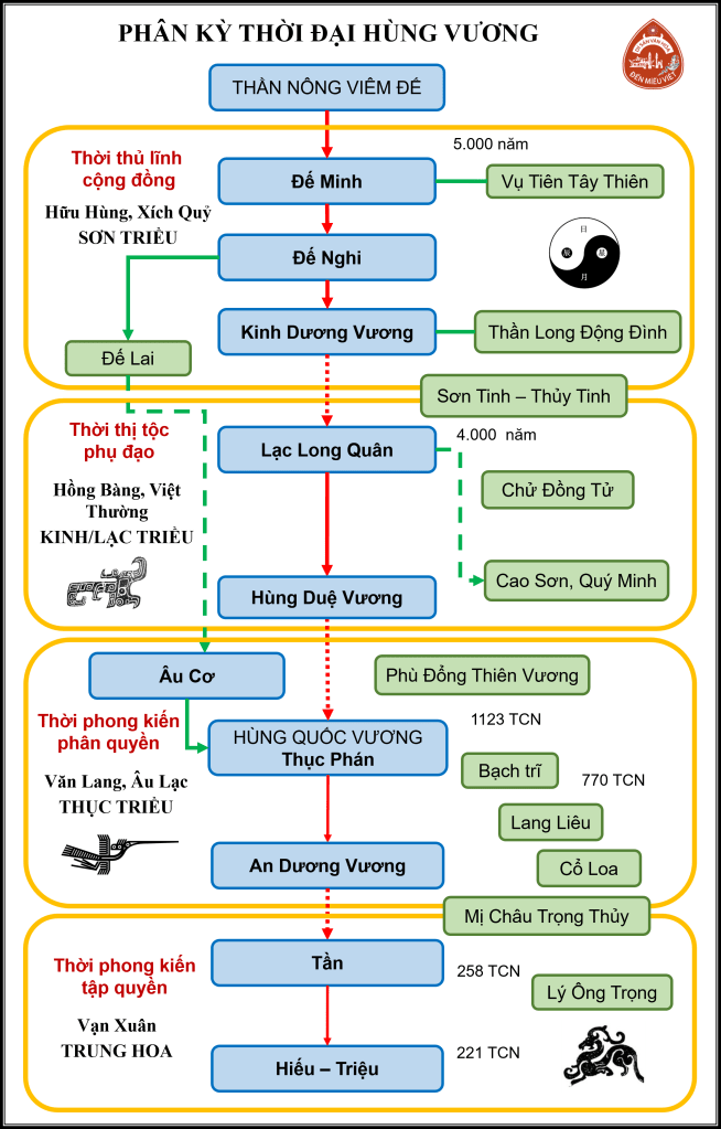 - Thục triều với lịch sử bắt đầu ngang với thời nhà Chu, từ mẹ Âu Cơ tác dịch, Hùng Quốc Vương thề trung thành với họ Hữu Hùng, xưng mình là Hùng Vương, lập nước Văn Lang, đứng đầu trong trăm nước Việt chư hầu.