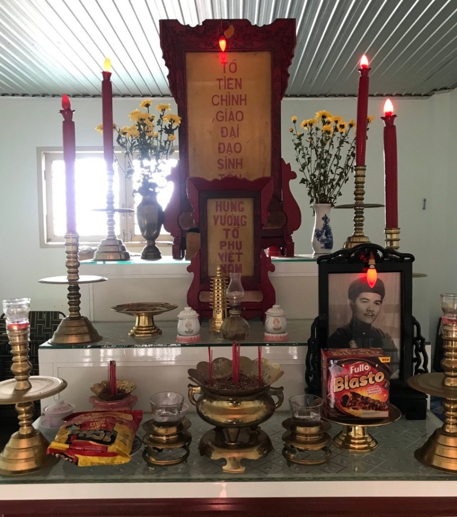Một ban thờ theo nghi lễ của Tổ Tiên Chính Giáo Đại Đạo Sinh Tồn ở Đăk Lăk