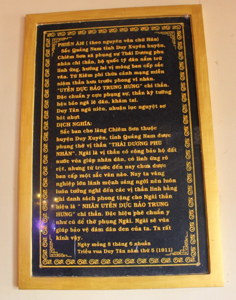 Thần nữ Ma Thị Cao Sơn ở núi làng quê Mang Bồi, sách Thủ Pháp, huyện Thanh Xuyên, phủ Gia Hưng, xứ Hưng Hóa, nước Văn Lang nay lập chúc thư.