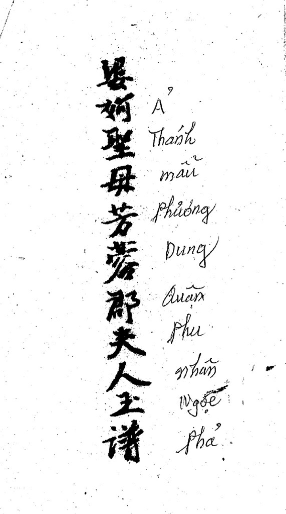 Thái tổ triều Lê gia phong Quốc mẫu Vua Bà A Phương Dung Trinh Thục Phu nhân Thượng đẳng phúc thần.