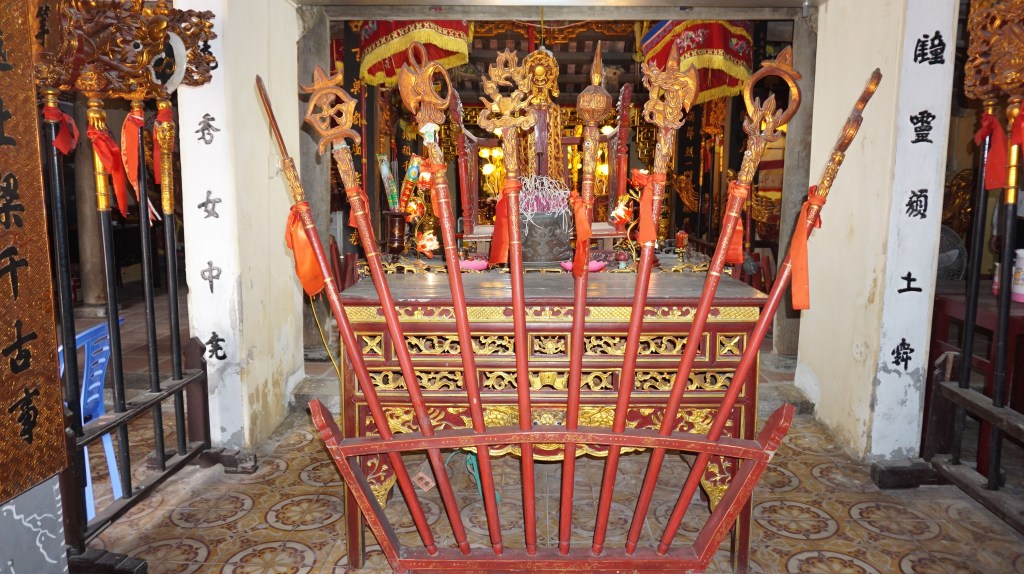 Bộ chấp kích trong đình Luật Ngoại thờ Quốc mẫu Vua Bà.Đình Luật Ngoại với Lầu rồng Gác phượng.