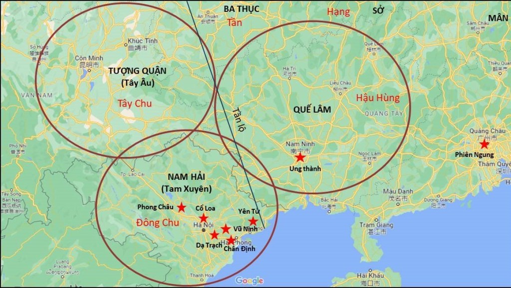 Các quận phía Nam nhà Tần và các địa danh khởi nghĩa của Triệu Vũ Đế.