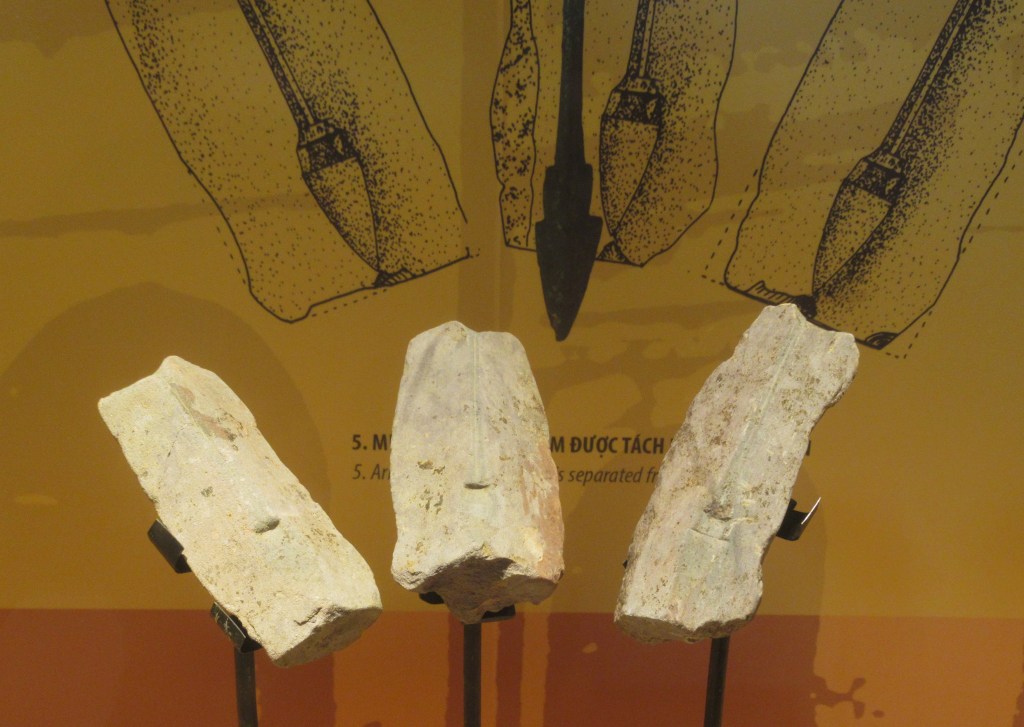 Chuông có chữ phát hiện ở Cốc Lếu, Lào Cai.Đầu ống ngói Cổ Loa.Khuôn đúc tên ở Cổ Loa.