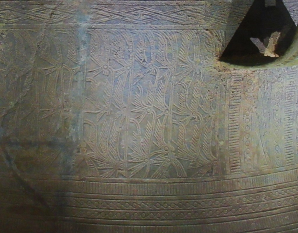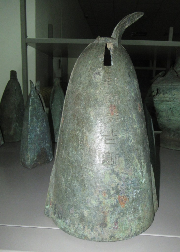 Một đồ vật điển hình khác của đồ đồng Đông Sơn muộn là những chiếc chuông voi. Gọi là chuông voi, nhưng đây là những chiếc chuông đồng nhỏ dạng hình tam giác cân có 2 tai nhỏ ở phía trên. Một trong những chiếc chuông voi tìm thấy ở Cốc Lếu, Lào Cai có dòng chữ Bang kỳ túc cát phúc đúc nổi. Chữ sử dụng trên chuông là dạng chữ Triện Lệ, loại chữ phổ biến từ thời Tây Hán.