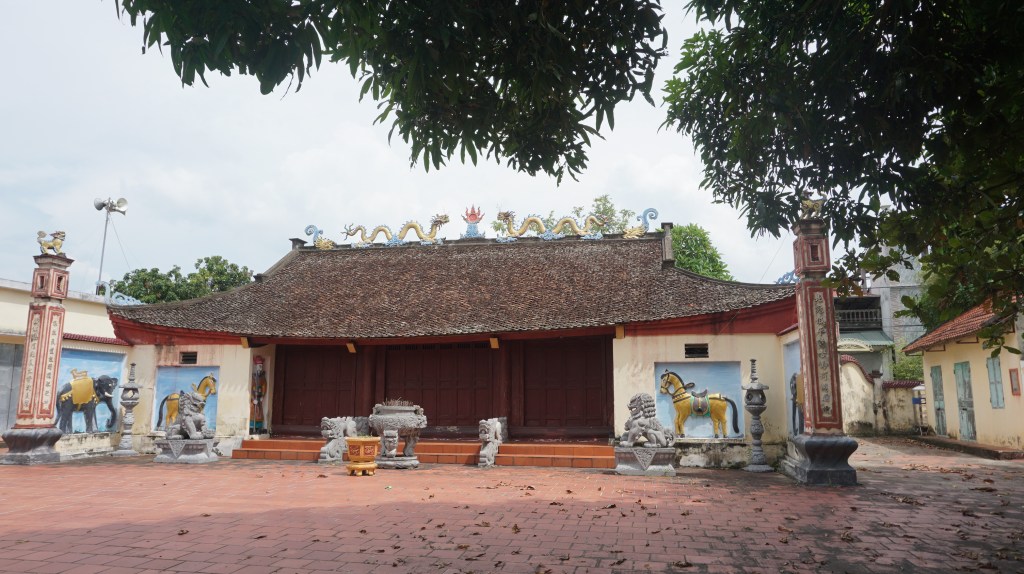Câu đối cho biết đây là 2 vị cổ thần đã hiển thánh từ thời Nam Giao – Hùng Vương. Lạ nữa là câu đối khác trong đền đề: