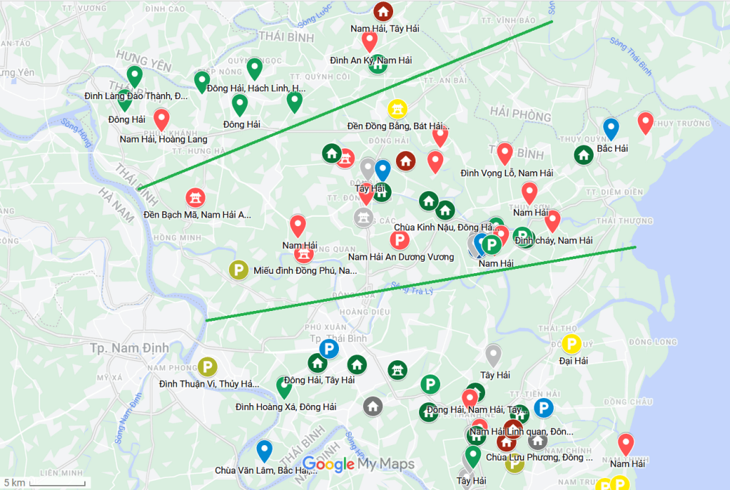 Các di tích thờ Hải thần ở Thái Bình có thể được chia thành ba tuyến như sau.