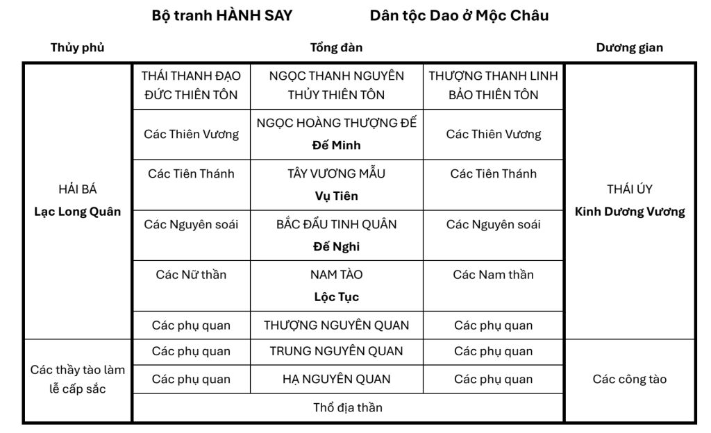 Vị Thánh Tổ Nam Dương cầm gậy thần và cưỡi trâu thì là Nam Thiên Thánh Tổ Tản Viên Sơn với cây gậy đầu sinh đầu tử. Nam Thiên Thánh Tổ cũng là Kinh Dương Vương, người đã vâng mệnh vua cha Đế Minh làm vua ở phương Nam. Bà mẫu trồng dâu dệt vải tương ứng như bà Tang Ma bên bãi Trường Sa Động Đình là Mẫu Thần Long, vị mẫu của Thủy phủ (Mẫu Thoải). Thì ra mối tình Ngưu Lang – Chức Nữ chính là sự kiện Kinh Dương Vương gặp mẫu Thần Long Động Đình trong sử Việt. Đây cũng là chuyện giữa Sơn Tinh (Tản Viên Sơn Thánh) và Thủy Tinh (Mẫu Thoải), dẫn đến mâu thuẫn mà hàng năm vào mùa mưa Ngâu tháng 7 lại dâng nước lên gây lũ lụt ở đồng bằng sông Hồng.