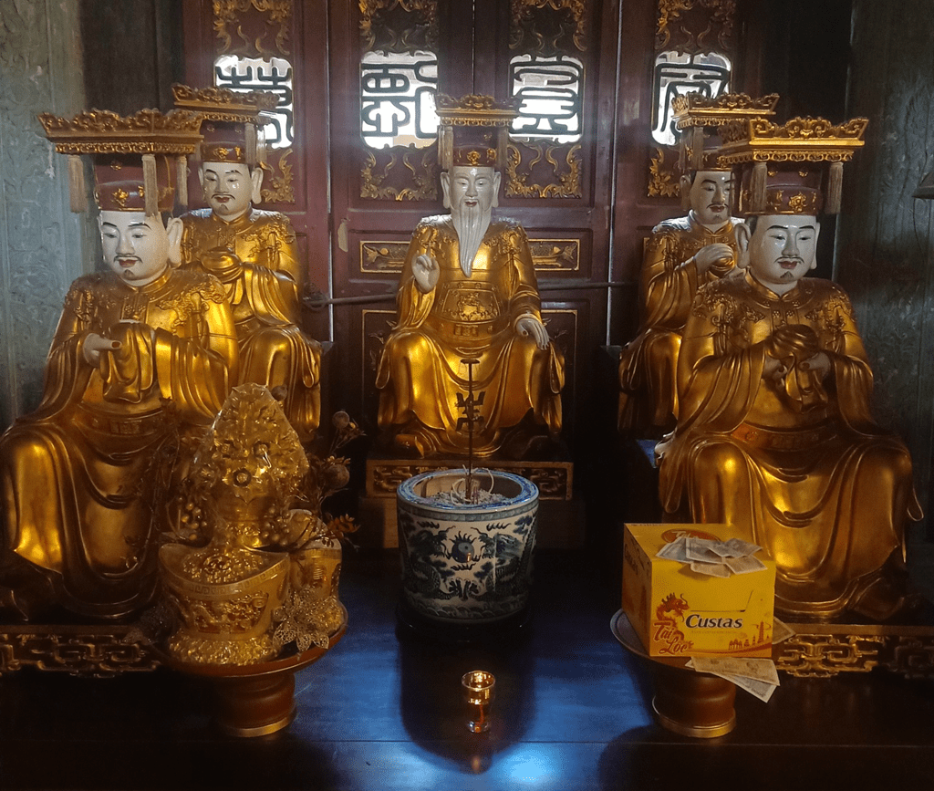 Chùa Yên Ngưu (Miếu Diệu Linh xưa) có lối thờ Tam Phủ là Thiên, Địa, Thoải nhưng khác với lối thờ của các đền phủ khác. Cung Vua cha Động Đình thay thế cho cung Chúa Sơn Trang. Cung thứ 2 thờ chính giữa Quan lớn Đệ Nhất Tôn Ông. Cùng với Tổ Mẫu Ngâu được thờ ở đây thì lối thờ này rõ ràng nhấn mạnh vào dòng Thủy phủ, trong đó Vua cha Thủy phủ ở đây là Động Đình Đế Quân, Tổ Mẫu Ngâu là Thần Long Động Đình, Quan lớn Đệ Nhất là Lạc Long Quân theo Truyện họ Hồng Bàng.