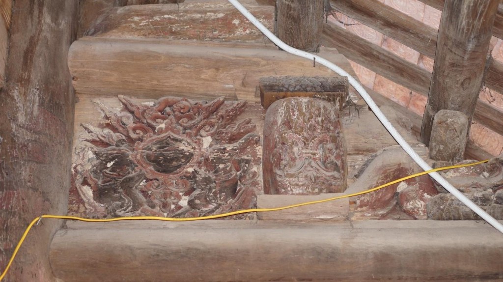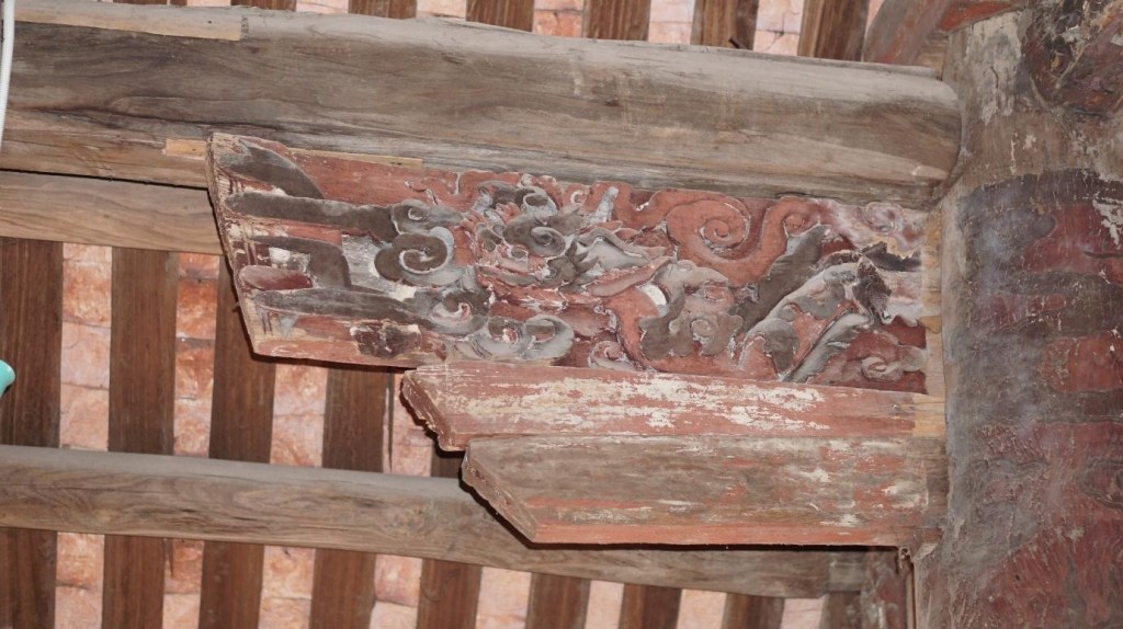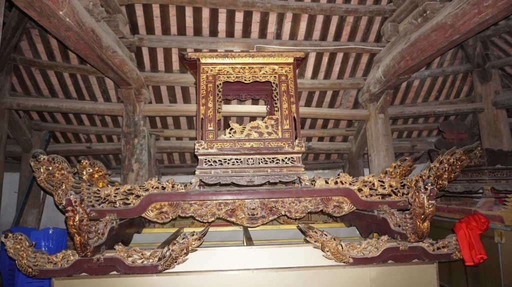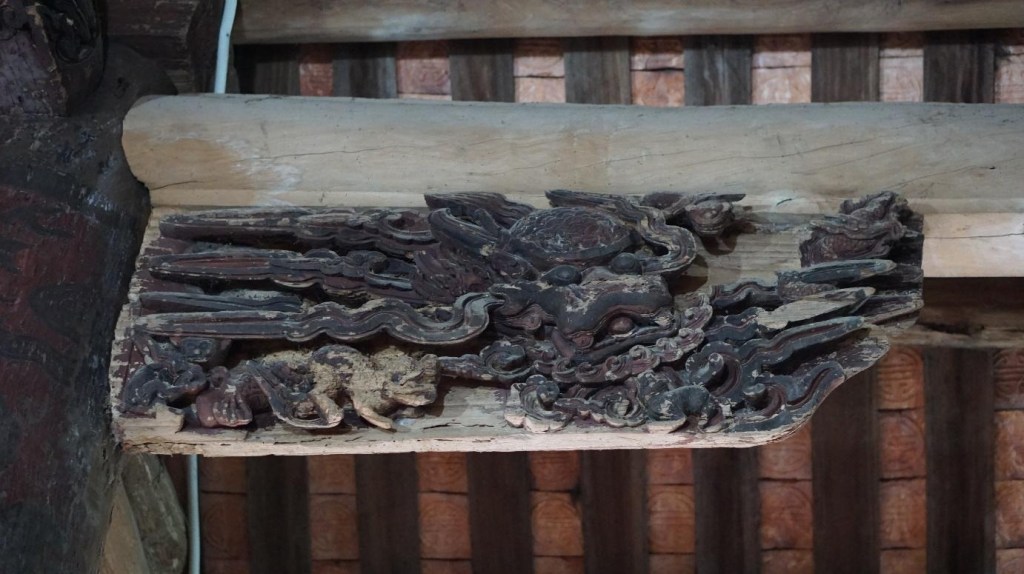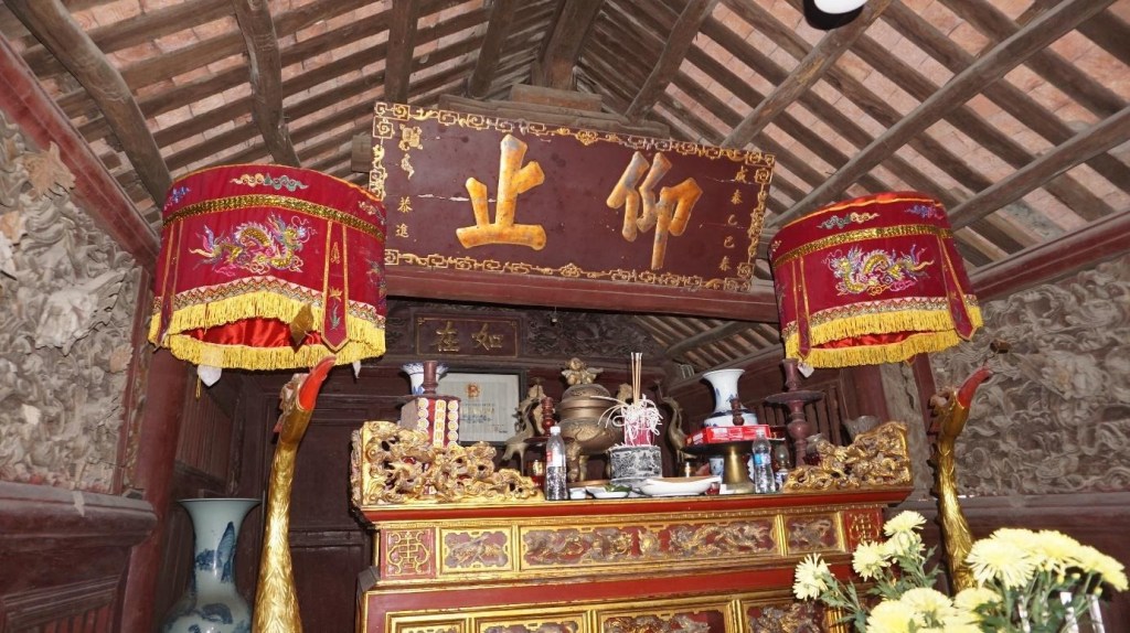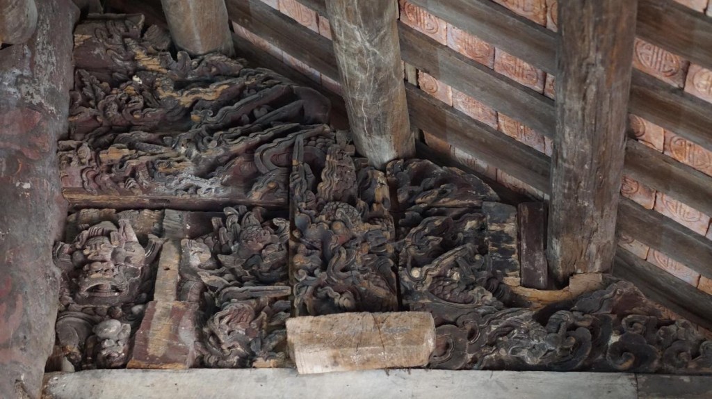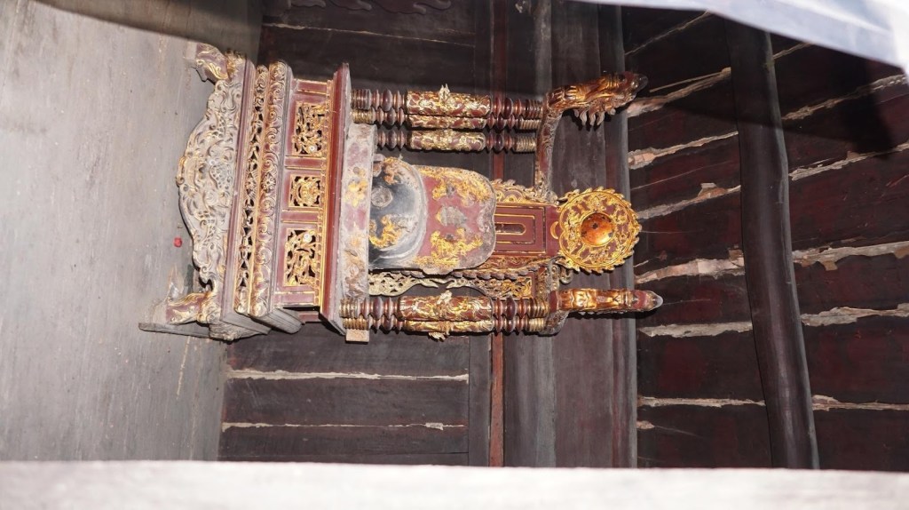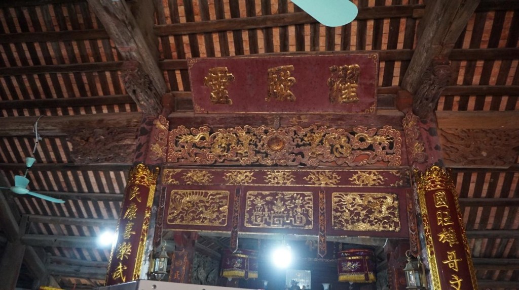 Tòa ống muống nối Đại đình với hậu cung, tòa ống này có 02 gian kết cấu kiểu con chồng đấu kê, vì nóc giáp hậu cung kết cấu kiểu ván mê.