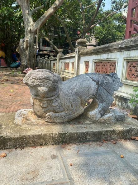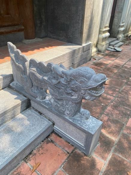 Rồng và nghê đá trước cửa chùa