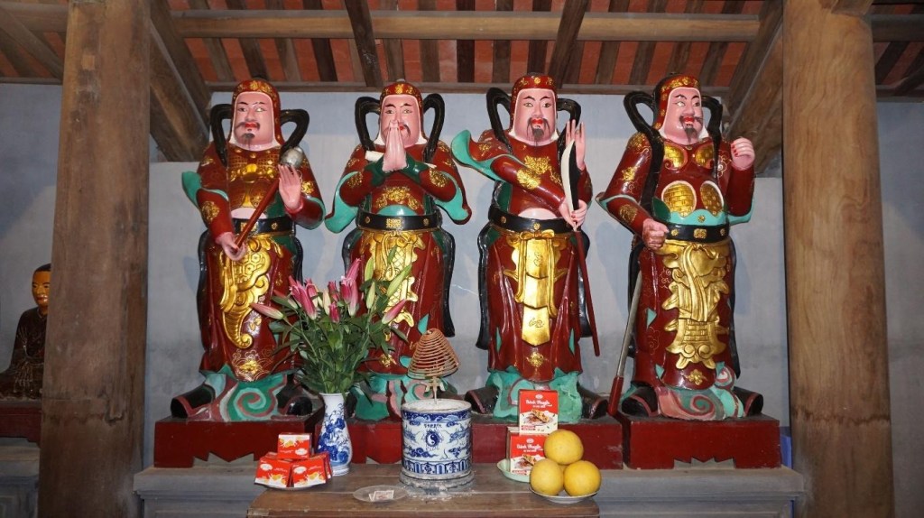 Hai bên hành lang bố trí 18 vị La Hán, phía cuối là ban Thánh hiền và Thánh tăng. Hoành phi ban Thánh tăng: Tú khí chung linh. Nghĩa là: Khí đẹp đúc thiêng. Hoành phi ban Thánh hiền (Đức chúa ông): Âm dương hợp đức. Nghĩa là; Đức âm dương hòa hợp.