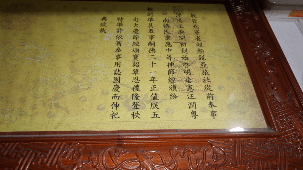 Lại phong Đức Ông Đài Vàng Đại vương. Lại phong Bố Cái Sô Tha Đại vương. Cho vâng đón sắc chỉ đem về nơi thôn Thượng Dục, sai quan … đến bày cúng tế, tu sửa đền cung, nhân dân được phụng thờ.