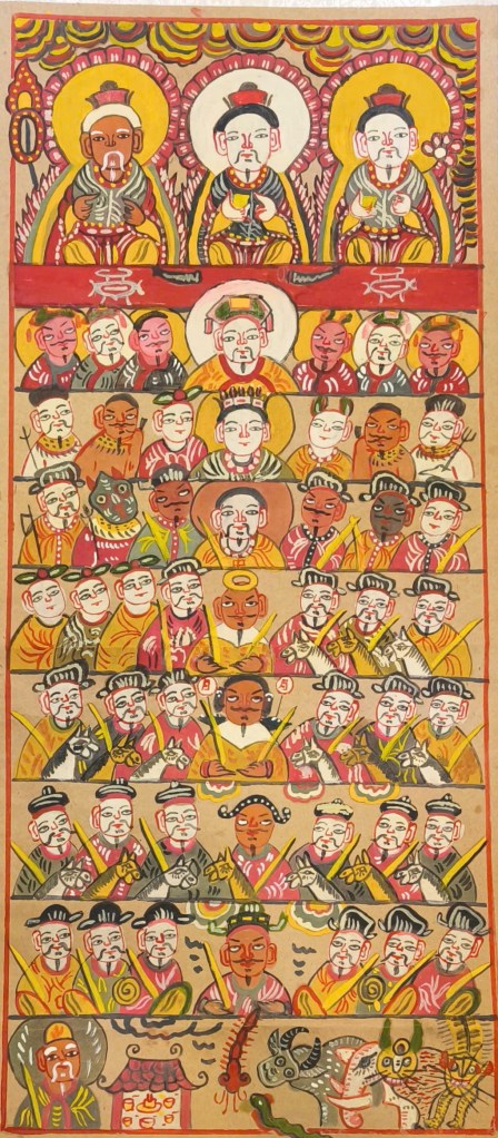 Người Dao có tín ngưỡng thờ Tam Nguyên. Tranh thờ Tam Nguyên, dùng trong lễ cấp sắc và các lễ hội của người Dao thể hiện các vị quan là Thượng Nguyên Thiên Quan tứ phúc cúng vào rằm tháng Giêng, Trung Nguyên Địa Quan xá tội cúng vào rằm tháng Bảy, Hạ Nguyên Thủy Quan giải ách cúng vào rằm tháng Mười. Khái niệm Tam Nguyên hay Tam Quan tương tự như tín ngưỡng Tam phủ của người Kinh. Trên chiếc chày gỗ là dụng cụ của các thầy cúng người Dao cũng có khắc hình các vị thần của Thiên phủ, Địa phủ, Thủy phủ và Dương phủ. Đặc biệt, vị vua của Địa phủ đã được Truyện Giếng Việt trong Lĩnh Nam chích quái ghi nhận là Ân Vương, người đã chết trong trận chiến với Thánh Dóng. Ngày rằm tháng 7 cúng Địa Quan Xá Tội Đại vương cũng là một ngày tiết lễ lớn trong năm của người Dao.