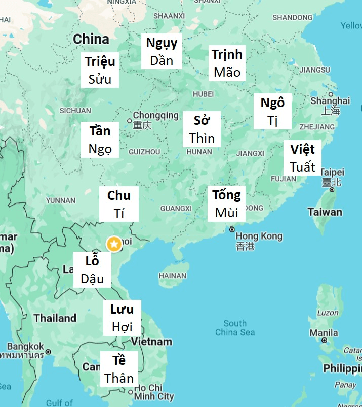 Lạc quốc không chỉ phát triển ra phía Đông ven biển mà còn lên phía Nam xưa (tức phương Bắc nay) sang vùng đất Quảng Tây, Quảng Đông. Người Choang ở vùng này là dòng dõi Lạc Thị, tới giờ vẫn làm lễ tôn thờ Lạc Vương và Long Mẫu. Người Choang cùng nhóm dân tộc với người Tày Nùng ở miền Bắc Việt, nên việc thờ thần Rồng và Long Mẫu vẫn còn in đậm trong bản sắc những dân tộc này cho tới ngày nay. Thủ lĩnh Lạc Vương ở thời này đóng đô ở Dương thành tại Phiên Ngung (Quảng Đông). Giai đoạn Lạc thị Trung Hưng Hoa Hạ, mở nước về phía Đông Nam xưa được Hùng Vương Ngọc phả gọi là thời Hùng Uy Vương, triều đại Hùng Vương thứ sáu theo phả đồ.
