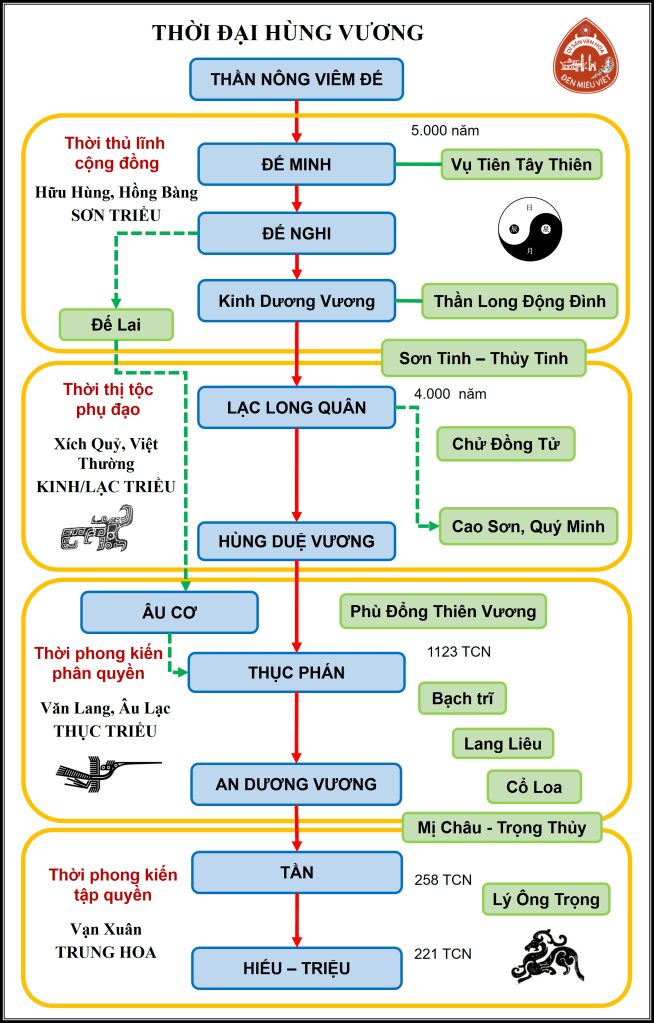 Bắt đầu từ Lạc Long Quân, ngôi vị thủ lĩnh thiên hạ được định đoạt theo dòng phụ đạo, tức là cha truyền con nối. Vì vậy Lạc Long Quân được gọi là “Bố”, hay đức Vua cha của Thủy quốc.