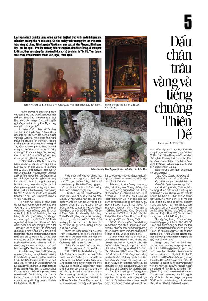2. Từ chùa Dâu, Trâu vàng theo dòng sông Dâu xưa chạy ra vùng đất Văn Giang. Ở Văn Giang nay còn có dòng sông mang tên Kim Ngưu với các di tích liên quan. Bên dòng sông này, tại thôn Cầu Váu của xã Vĩnh Khúc, huyện Văn Giang có đền thờ Đế Thích với tên là Thiên Đế tự. Sự tích ở đây chép rằng Thiên Đế đã giáng trần, cưỡi Bò vàng, bắn cung, diệt trừ quỷ Càn Sát và 15 loại quỷ trừ hại cho dân. Khu vực này tới nay vẫn lưu giữ tục lệ không ai được cưỡi Bò là vì vậy.